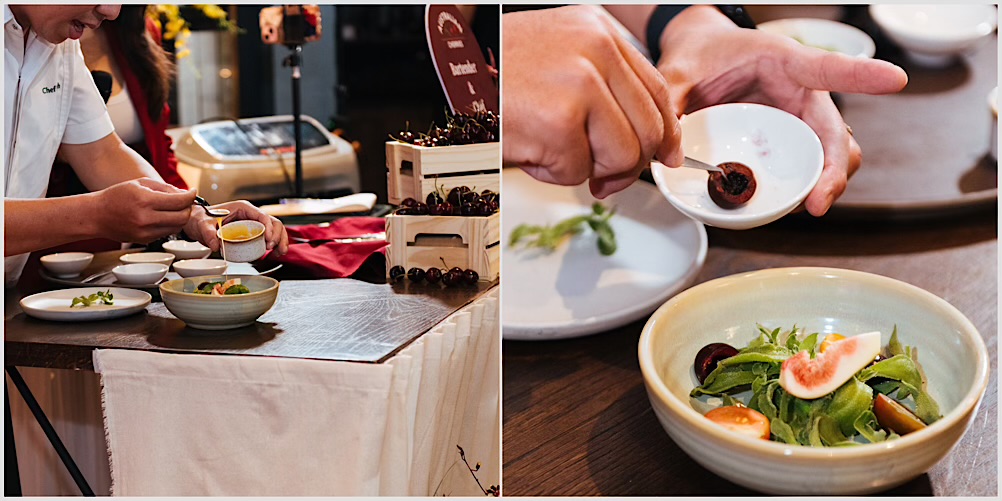 Chef Thanh từ nhà hàng The Ox Not Only Ox trình bày các món ăn sáng tạo lấy cảm hứng từ cherry