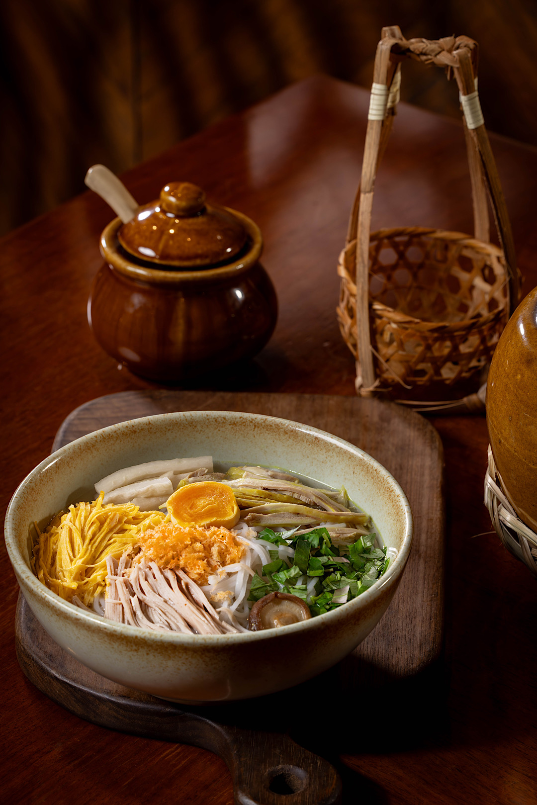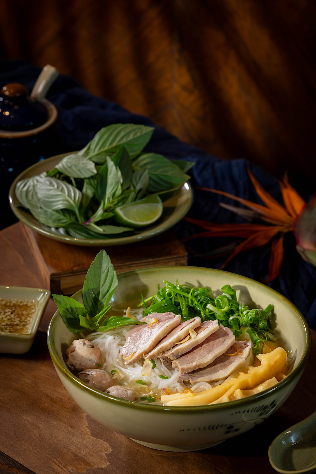 Rời vị chua thanh ấy, thực khách gặp bún ngan, đủ đầy để cân bằng vị giác. Bát bún nhỏ nhắn, thơm mùi măng khô, nước dùng đậm đà, thịt ngan mềm và ngọt. Ở Sài Gòn, không khó để tìm bún ngan, nhưng để thấy được cái “chuẩn vị” Bắc, để ăn mà thấy lòng dịu lại, thì lại là chuyện khác.