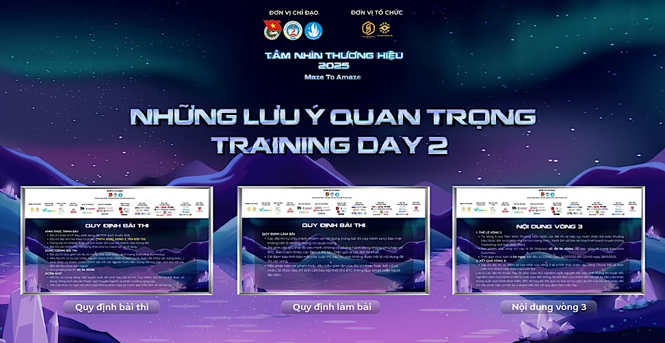 Trong buổi Training Day 2, Ban Tổ Chức cuộc thi đã cập nhật thông tin chi tiết về cơ cấu và yêu cầu của Vòng 3 đến cho thí sinh. Top 25 đội thi đã được tiếp cận những kiến thức thực tiễn, phương pháp tư duy chiến lược cùng những chia sẻ quý báu giúp hoàn thiện bài thi của mình trong vòng tới, đồng thời mở ra những góc nhìn sâu sắc về chiến lược truyền thông và xây dựng thương hiệu trong bối cảnh thị trường ngày càng biến động. Buổi Training đã mang lại bầu không khí sôi nổi, và kiến thức hữu ích dành cho các bạn thí sinh.