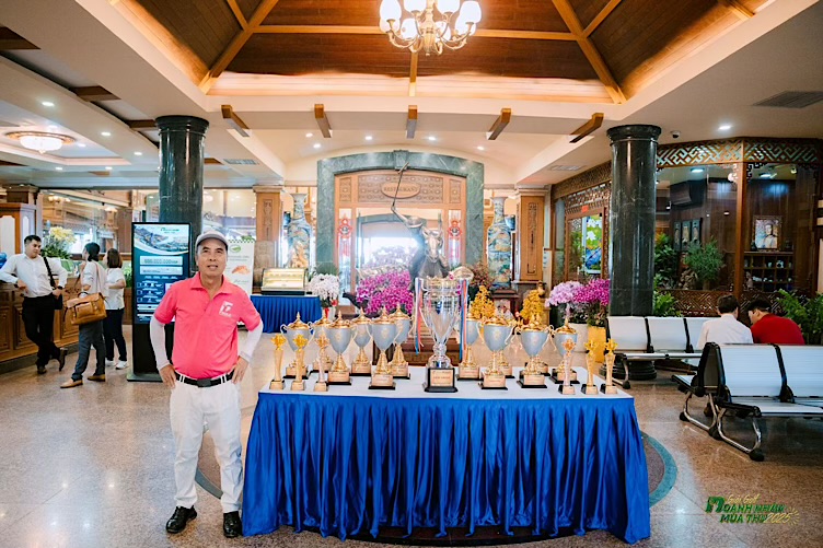 Golfer check in cùng những chiếc cúp danh giá của giải đấu