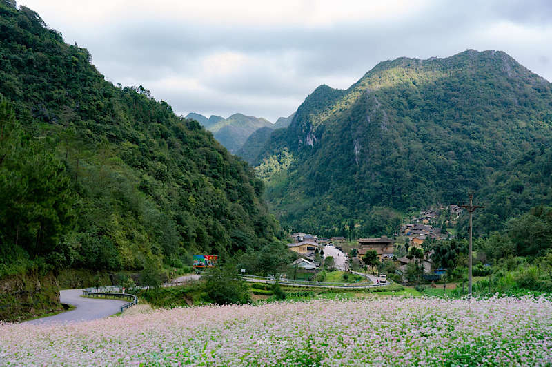 Mùa này, trên Cung đường Hạnh Phúc – con đường huyền thoại nối liền Quản Bạ, Yên Minh, Đồng Văn và Mèo Vạc – tam giác mạch nở rộ khắp nơi. Mỗi chặng dừng chân là một bức tranh hoa, một lát cắt khác nhau của Hà Giang: