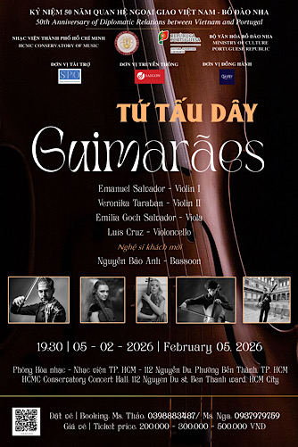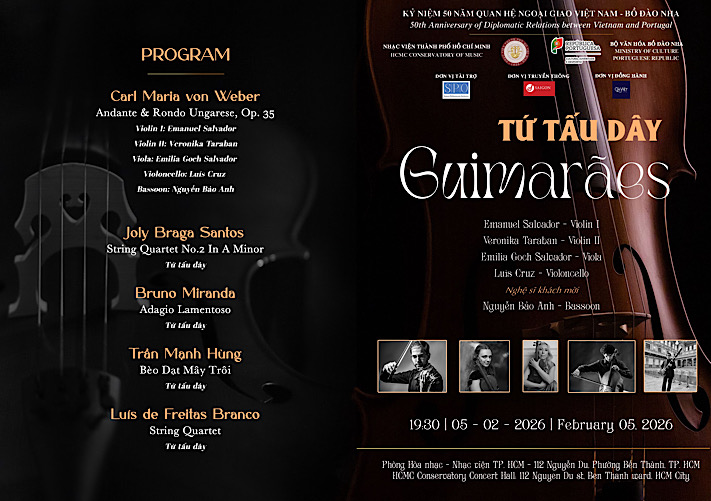 Nhân dịp Kỷ niệm 50 năm thiết lập quan hệ ngoại giao Việt Nam – Bồ Đào Nha, Nhạc viện TP. Hồ Chí Minh vinh dự giới thiệu buổi hòa nhạc của Tứ tấu dây Guimarães (Guimarães String Quartet) – nhóm nhạc được nhận sự bảo trợ của Bộ Văn hóa Bồ Đào Nha và đồng hành hỗ trợ bởi Công ty Dàn nhạc Giao hưởng Sài Gòn.