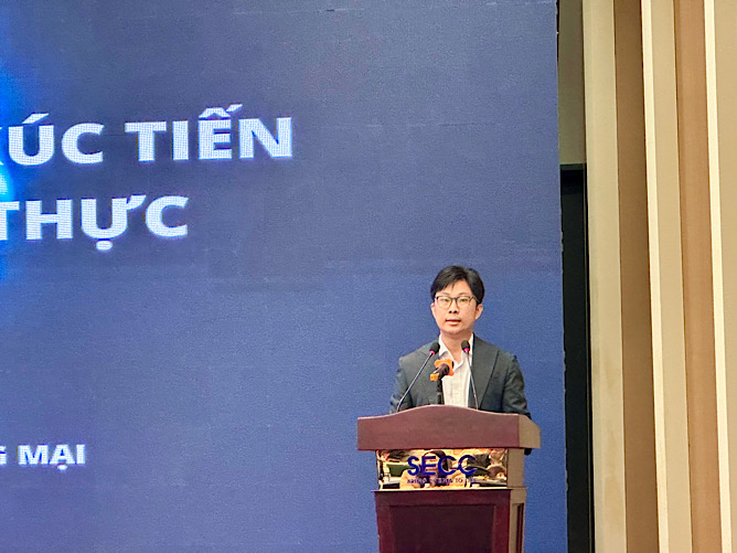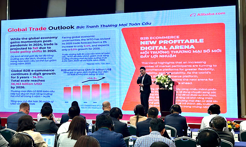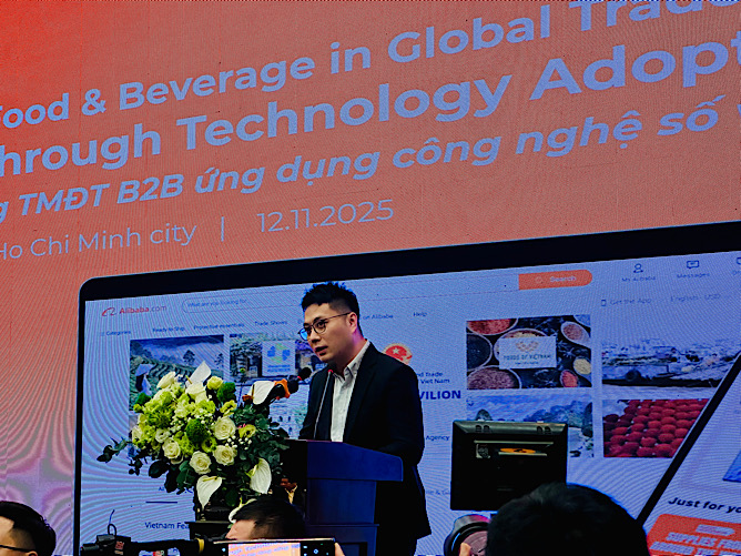 Tiếp theo là các tham luận chuyên đề từ đại diện các tổ chức trong nước và quốc tế, bao gồm Cục Đổi mới sáng tạo – Bộ Khoa học và Công nghệ, Alibaba.com Việt Nam, cùng các doanh nghiệp thực phẩm đạt Thương hiệu Quốc gia. Họ chia sẻ kinh nghiệm thực tiễn và mô hình triển khai xúc tiến thương mại trực tuyến hiệu quả.