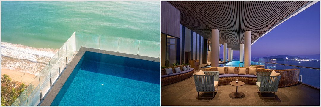 Khi thành phố dần trở nên sôi động, khách sạn lại mang đến nhiều lựa chọn để “ở lại” theo cách riêng. Lên đến tầng 30, trải nghiệm chuyển sang một trạng thái khác tại Pool Bar, nơi du khách có thể chậm rãi “thưởng lãm” thời gian, nhâm nhi một ly cocktail và ngắm Nha Trang trên cao, mang lại một sự tĩnh lặng hiếm hoi giữa lòng đô thị.