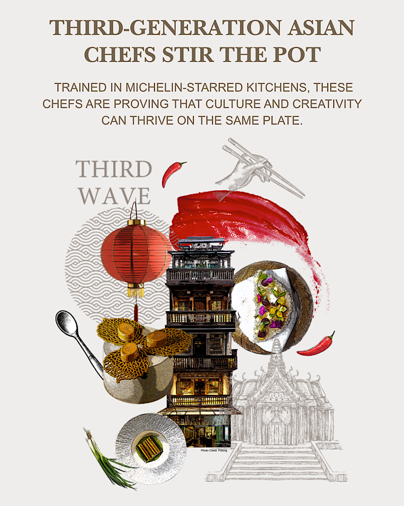 Được đào tạo trong các nhà hàng đạt sao Michelin, một làn sóng đầu bếp thế hệ thứ ba đang tạo nên cuộc cách mạng trong ẩm thực châu Á. Với vai trò như những đại sứ văn hoá, họ ứng dụng kỹ thuật nấu ăn hiện đại kết hợp cùng nguyên liệu bản địa, nhằm nâng tầm và tinh chỉnh nền ẩm thực truyền thống. Họ không chỉ đơn thuần là nấu ăn – mà còn gìn giữ di sản, đồng thời mở ra hướng đi mới, minh chứng rằng truyền thống và đổi mới hoàn toàn có thể song hành một cách hài hoà trên cùng một đĩa ăn. Tinh thần sáng tạo ấy còn lan toả đến thế hệ đầu bếp đường phố trẻ – những “hawkerpreneurs”, những người đang thổi làn gió sang trọng vào món laksa hay đưa sự táo bạo vào món satay, biến ẩm thực bình dân trở thành biểu tượng của sự sáng tạo và bản sắc đương đại.