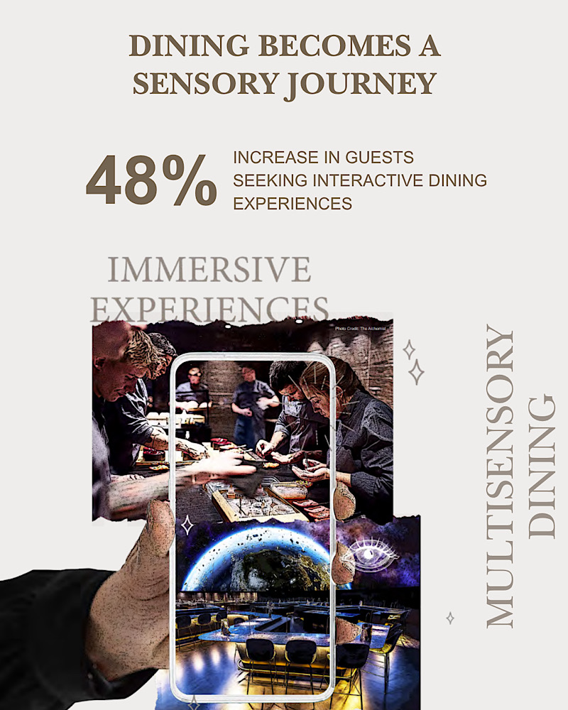 Trên khắp châu Á, việc dùng bữa đang trở thành hành trình đánh thức mọi giác quan, nơi thực khách có thể dùng bữa trong không gian tối, hoặc thưởng thức món ăn được trình bày như tác phẩm nghệ thuật. Gần 48% đội ngũ ẩm thực của Marriott International ghi nhận sự tăng trưởng rõ rệt về nhu cầu trải nghiệm tương tác và trình diễn tại nhà hàng. Từ hành trình omakase tinh tế đến không gian chủ đề được dàn dựng công phu, các nhà hàng đang ngày càng chú trọng yếu tố trình diễn và tính tương tác để mang đến những trải nghiệm đắm chìm, đánh thức mọi giác quan. Khi ranh giới giữa bán lẻ, khách sạn và giải trí ngày càng mờ nhạt, ẩm thực đang trở thành ngôn ngữ thể hiện bản sắc và sự sáng tạo của con người.