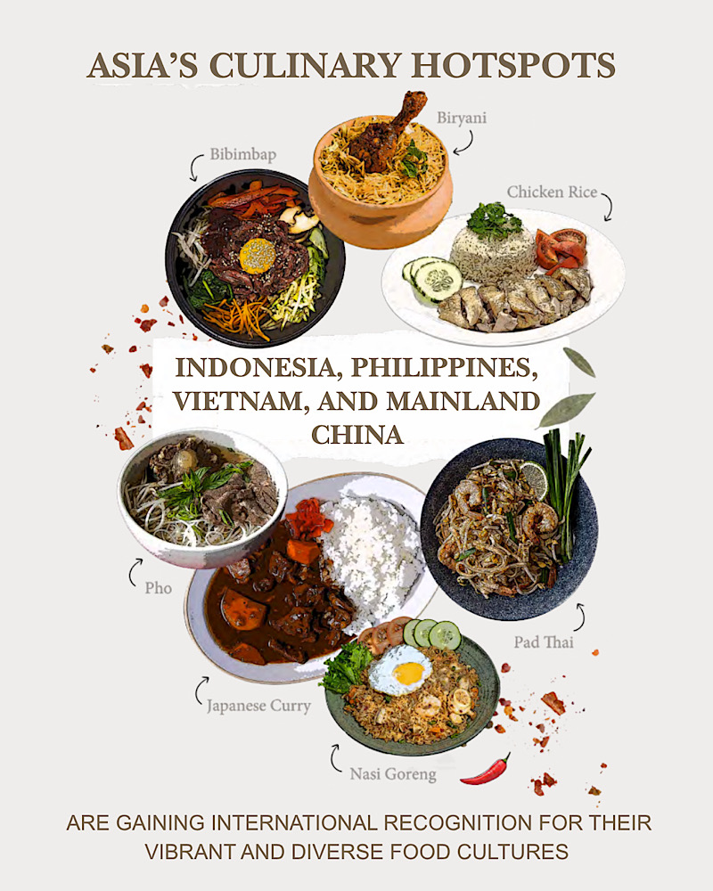 Indonesia, Philippines, Việt Nam và Trung Quốc đại lục đang ngày càng được quốc tế công nhận nhờ nền văn hoá ẩm thực sôi động và đa dạng. Báo cáo chỉ ra rằng, những điểm đến này đang bước lên sân khấu ẩm thực thế giới với niềm tự hào và sự tự tin mới.