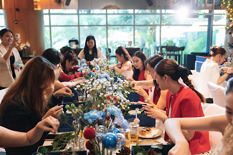 Vừa qua, Le Méridien Saigon tổ chức buổi workshop cùng hoa với nến với chủ đề “Hộp quà Giáng sinh Bắc Cực”. Khách tham dự có cơ hội trải nghiệm những giây phút thư giãn cùng không gian ngập tràn hoa tươi đầy lãng mạn đến từ WD Florist Vietnam – đối tác đồng hành chính cùng Le Méridien Saigon cho sự kiện này.