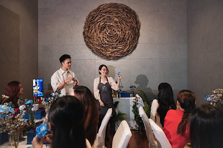 Khách hàng thích thú trải nghiệm buổi workshop nến và hoa tại Le Méridien Saigon