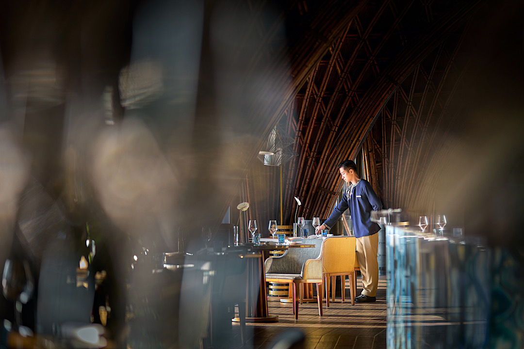 Dưới những vòm tre uốn lượn nổi bật trên Bãi Trường, LAVA hiện lên như sự giao hòa hoàn mỹ của kiến trúc, câu chuyện và nghệ thuật ẩm thực. Than hồng bập bùng cháy, quầy bar san hô hóa thạch phản chiếu ánh sáng xanh mê hoặc và tiếng sóng ngoài khơi hòa cùng nhịp chuyển động của gian bếp khiến LAVA trở thành một hành trình tinh tế, nơi lửa, biển và nghệ thuật cùng gặp nhau.