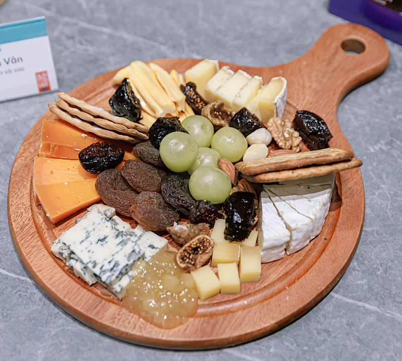 Không dừng ở rượu, workshop hướng dẫn condiments: trái cây khô, mứt, hạt để cân bằng, không lấn át. Blue “hợp tính” mật ong rừng, mứt lê/vả – ngọt dịu mặn. Brie đẹp đôi compote dâu/mơ chua nhẹ. Emmental dễ chiều táo hầm quế, mứt nho. Comté chơi chutney hành, mơ khô; Mimolette quince paste. Tránh mứt ngọt hóa học – nếu lỡ, cứu bằng táo tươi hoặc vang chua.